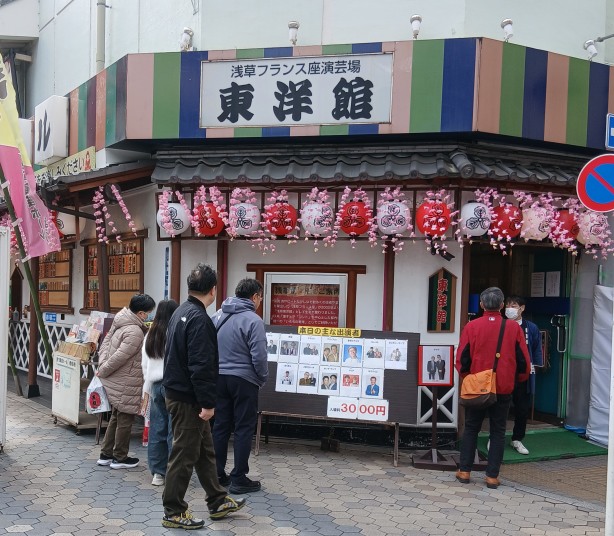 昨日予定していたことを実行と思っていたが朝ダラダラしていて?予定の吉野家の朝食にはありつけず?家で軽く済ませてバスで出発、お~電車は空いていて座れた、そして上野で降りて…予定は動物園に行ってと言う事だが時間が無いので入谷口の方へ降りて…さてここから浅草の寄席まで歩く事に、今日は裏道を通って稲荷町の当たりをぶらぶら、いや~この辺はお寺や神社が沢山あるな~!そして河童橋の道具街を突っ切って浅草へ、お~今年初めての寄席だな、何時もの浅草の演芸館、今日は一之輔と正蔵の出が有るせいか混んでいる。下は一杯なのだが二階が空いていたので一番前列に陣取って、入った時には二階はガラガラだったのだが時間がたつにつれて一杯になってしまった、今日は三平も出る予定だったが変更になった様で…そして一之輔の話を聞いて、今日の出し物は間抜けな泥棒物、然し時間が少ないせいかかなり端折っての話、でもさすがと言うか面白い!その後に林家正蔵、始めて話を聞いたがまぁまぁの出来かな?先代の正蔵にはまだ追いつかないな…まぁ精進を重ねて追い越して貰いたいものだ!そして時間はもう4時だ、この先トリ迄聞いていると又電車が混んじゃうと言う事で今日は此処で寄席を出る。そして久し振りで仲見世を通って浅草の駅へ、まぁ平日だと言うのに物凄い人出だ、それも殆どが外人?驚くね~!そして電車に乗って蒲田まで行く、そして久し振りで散髪をしてその後はドンキに入ってあちこち見て、時間を見たら6時になったのでそれではと言う事でタクシーでとりあえず家に向かう、タクシー券も余って居る事だし?後一カ月で使い切らないと?そして家に戻る途中何時もの店を見たら開いているのでちょっと寄って軽く一杯、誰もいないところでママと軽く一杯?まぁとりとめのない話をして2時間ほどで店を出て…そして家に戻って小腹が減ったので軽くお茶漬けを食べて今日は終了、いや~良く動いたな、疲れた、と言う事で今日の予定は終了、さて木曜日はどうするか?久し振りで麻布の当たりをぶらぶらしてみようかな?大昔会社の在った二の橋や古川橋の当たりを歩いてみたいが?まぁこれもあくまで予定だが?・・・
