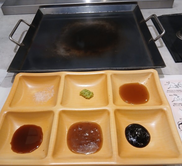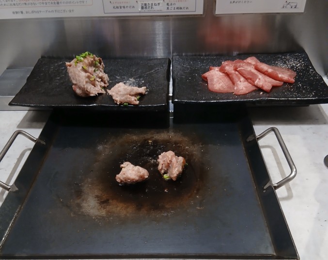 お~初体験?生ハンバーグと牛タンを鉄板に載せて自分で焼いて食べる形式?こんなの初めて、と言う事で早速ハンバーグを小口に切り取って鉄板の上に、そしてじっくり焼いてと…そしてビールとお水で乾杯!?そう,洋子ちゃんは只今禁酒中!そして焼き立てのハンバーグを口へ…その時に色々なソース類が有ってそれをつけて食べる。そこにわさびが…いや~これがばっちりはまったね~!これは旨い、後は牛タンも焼いてと、これは焼肉風かな?そして2時間弱、いや~美味しかった、それに楽しいのだ!と言う事で店を出る。