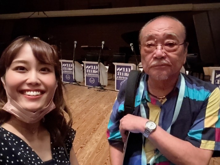 そして休憩時間に葉子ちゃんが来て私の隣の席が誰も来なくて空いているので行きましょうと言う事で隣だっての観劇、いや~この絵は寄席での隣りあわせ以来の事、そうか、ドリンクの当たりはこのラッキーの場面だったのかな?そして後半の演奏開始、ボーカルも入った演奏が続いて・・・手拍子の場面が有ったがその時には葉子ちゃんも一緒に手拍子、然し驚いたのはそのリズム感、全然ぶれないで手拍子を摂れる、いや~流石と言うか改めて音楽家の葉子ちゃんに感服!尊敬を新たにしました!そしてフィナーレはインザムード…いや~葉子ちゃんと空気を共有できて最高の時間でした、そして演奏終了後にステージの近くで写真を撮ると言う行動も初めて教えられて…知らない事ばかりです!